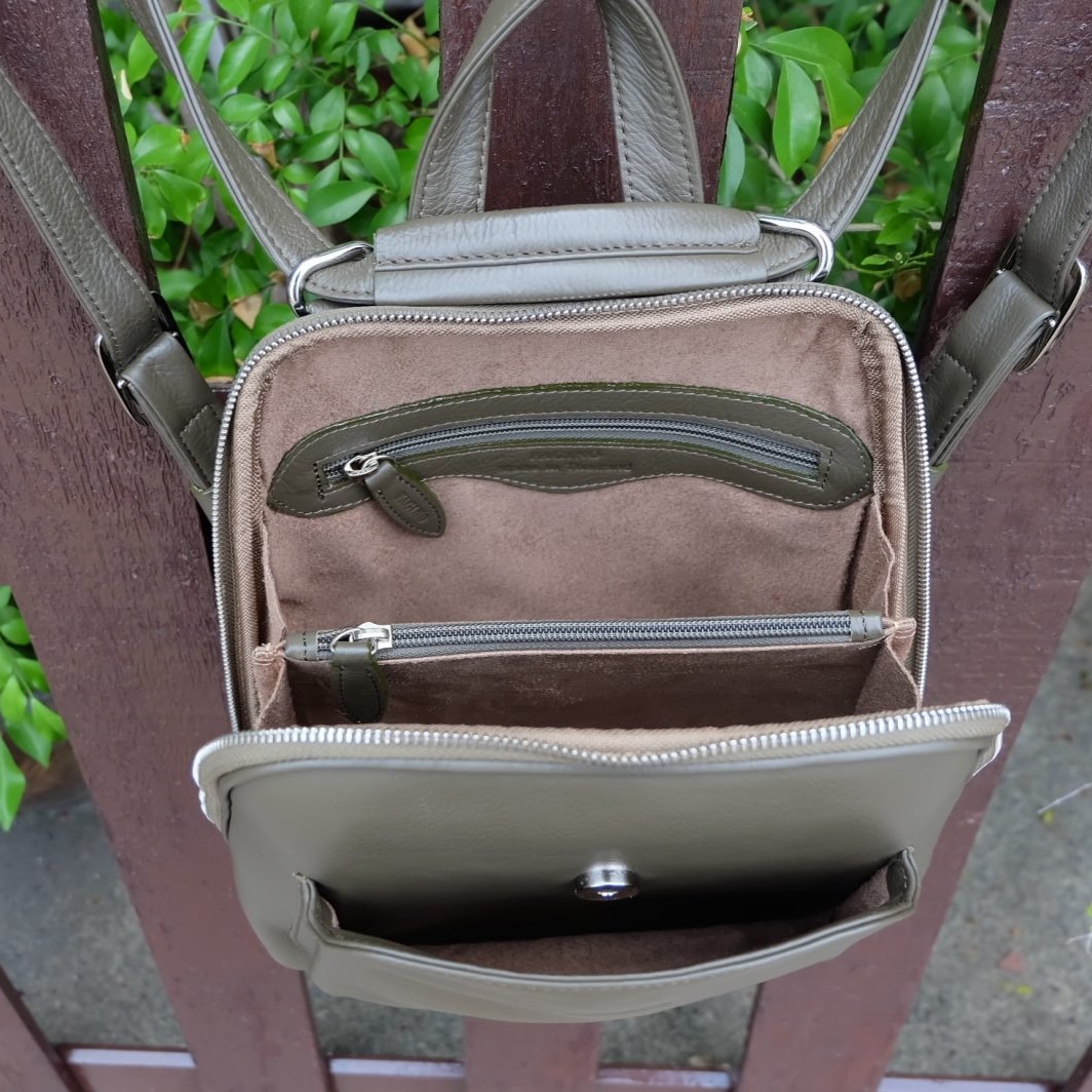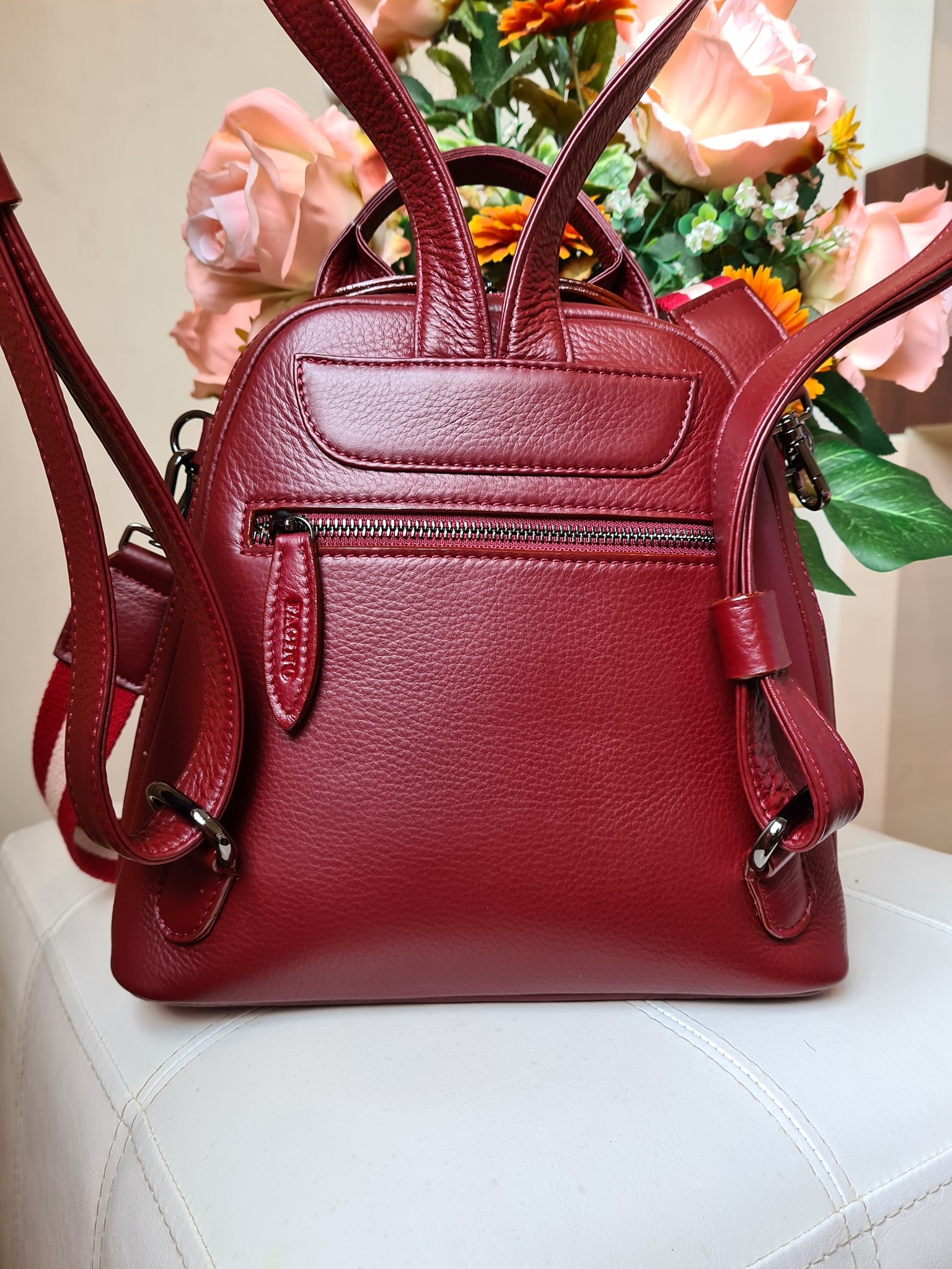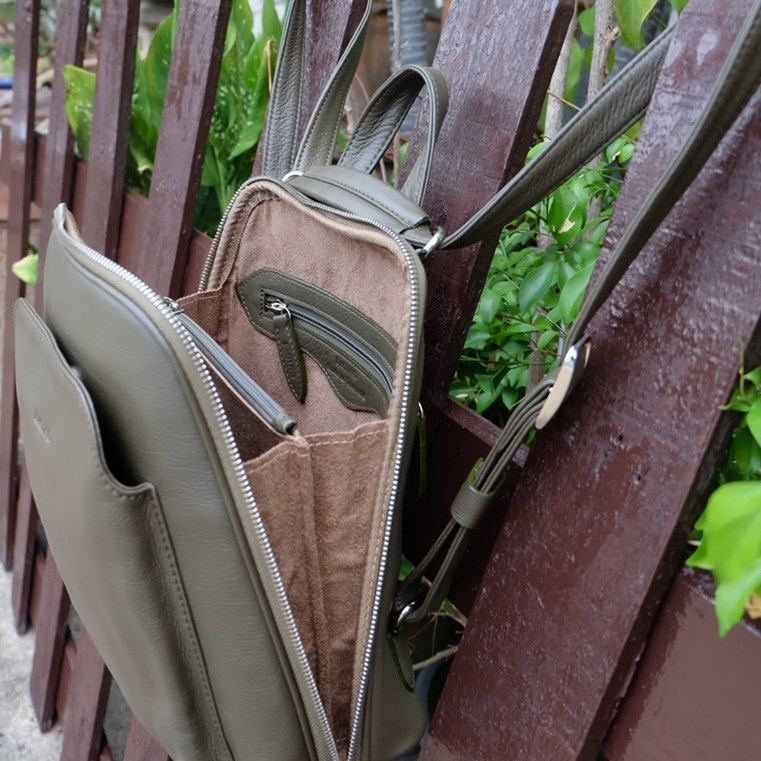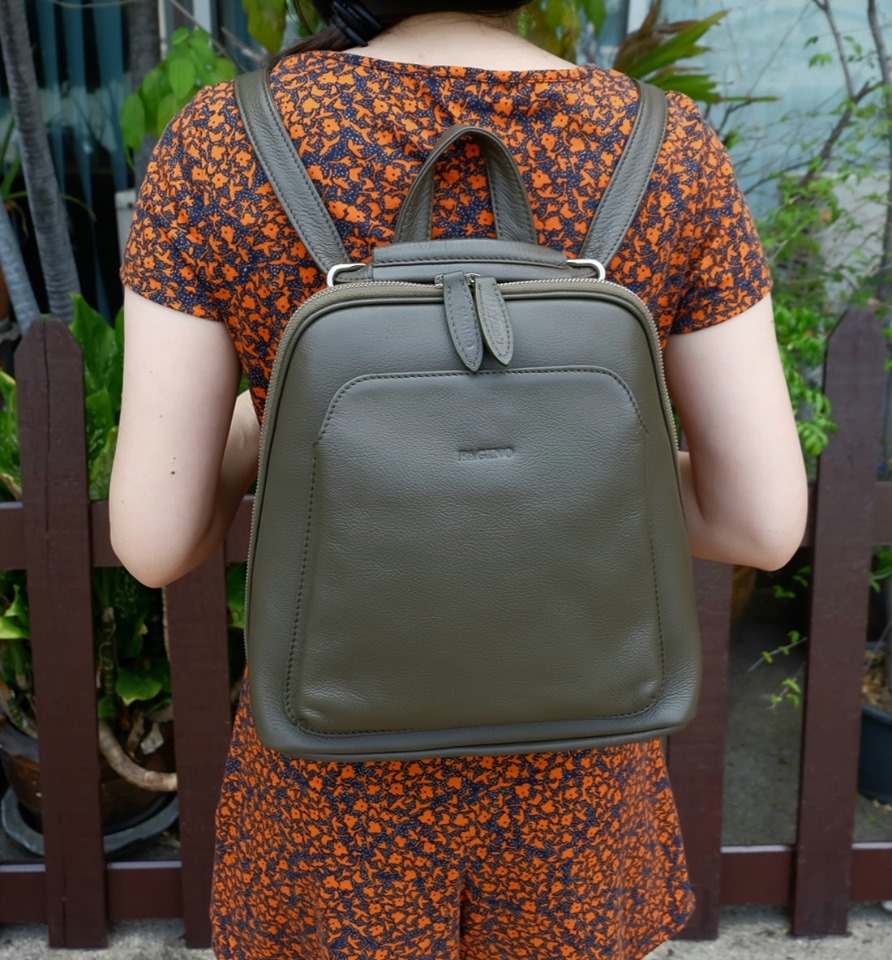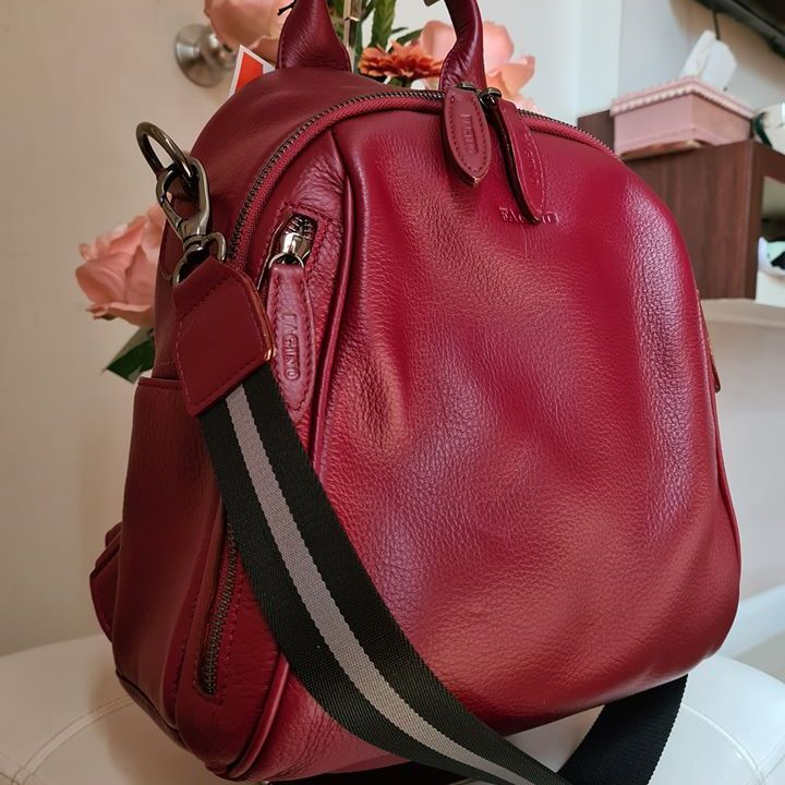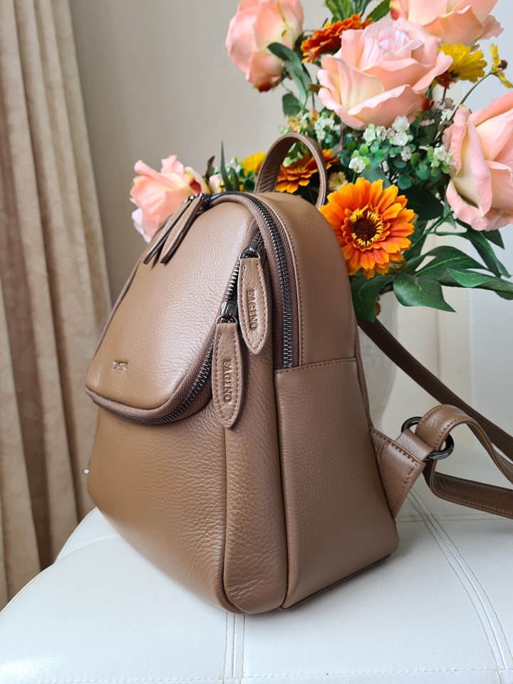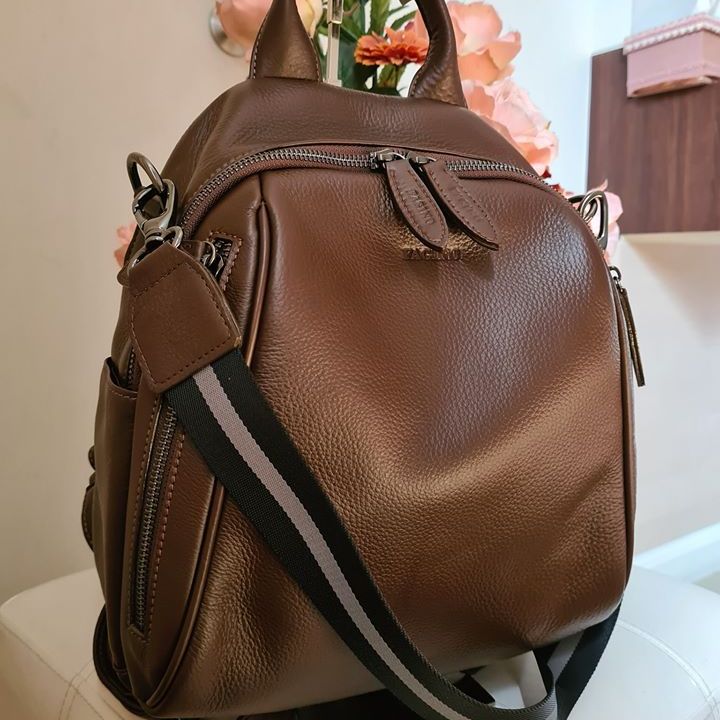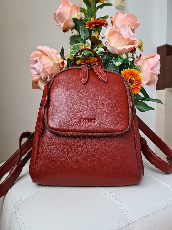 Can be a backpack, a backpack that can be carried across the front and back Importantly, this bag is a backpack with a central compartment and a front compartment in the back. How many usage channels? But like the girls who like a lot of channels Distinctly the focus, but the leather texture is soft and pleasant to use, very touching Easy care, not a scratch, a must FAGINO only.